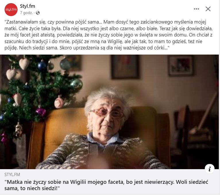 8) Pamiętaj, że jesteś nowoczesna, wykształcona, tolerancyjna a opisana sytuacja dotyczy jedynie wigilii, jasno przecież widać, że w ciągu roku Twoje stosunki z matką są modelowe. To pewne, że Mama nie lubi Marcina tylko za ateizm.