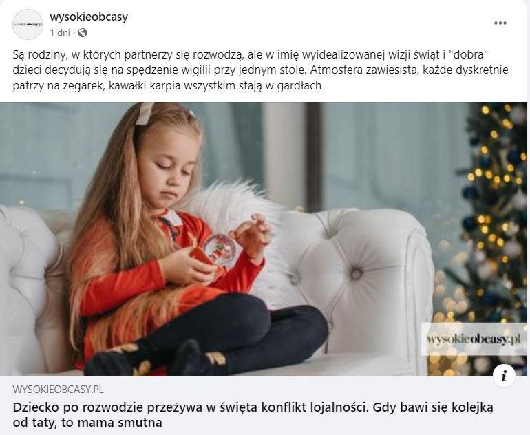 3) Wigilia to konflikt lojalności wywołany wyidealizowanym dobrem dzieci, kolejka od taty boli mamę. Natomiast rozwód dla dzieci to super przeżycie, przez resztę roku w wysokich obcasach promowane jako prosty sposób na odzyskanie samodzielności.