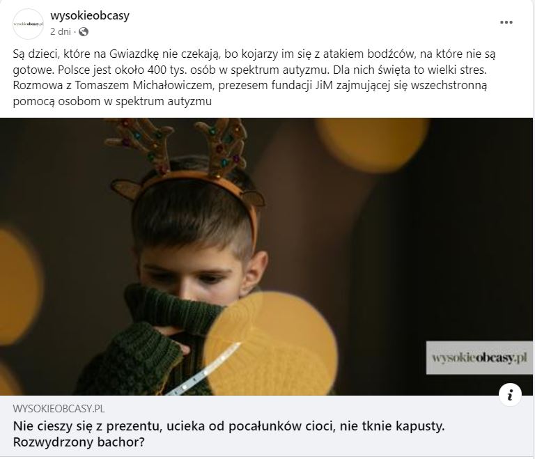 2) Wigilia jest wielkim stresem dla 400 tysięcy dzieci z autyzmem.
