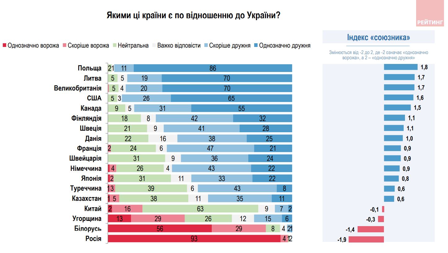 Jedna z bardziej poważanych sondażowni ukraińskich działająca od 2008 roku – Соціологічна група «Рейтинг» (Група «Рейтинг»), ratinggroup.ua, przeprowadziła niedawno sondaż, który składał się z wielu pytań, takich jak „czy obawiasz się, że Rosja użyje broni atomowej”, „Czy uważasz, że sprawy na Ukrainie idą w dobrym kierunku” oraz, co dla nas ważne w kontekście tematu tego wpisu – pytanie dotyczące stosunku wobec mieszkańców 18 państw europejskich. Sondaż przeprowadzono w dniach 8-9 października.